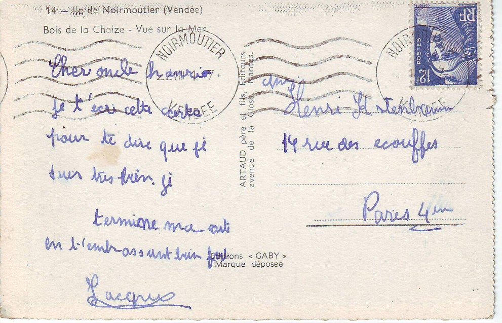 Très versé dans la littérature, comme le montre cette lettre écrite à son oncle Henri, c'est un éleve assidu, bien que "pourrait faire mieux" , qui décroche brillament son brevet de natation, 50 mètres nage libre,en 1957, ainsi que son CAP de Feronnerie Chaudronnerie.